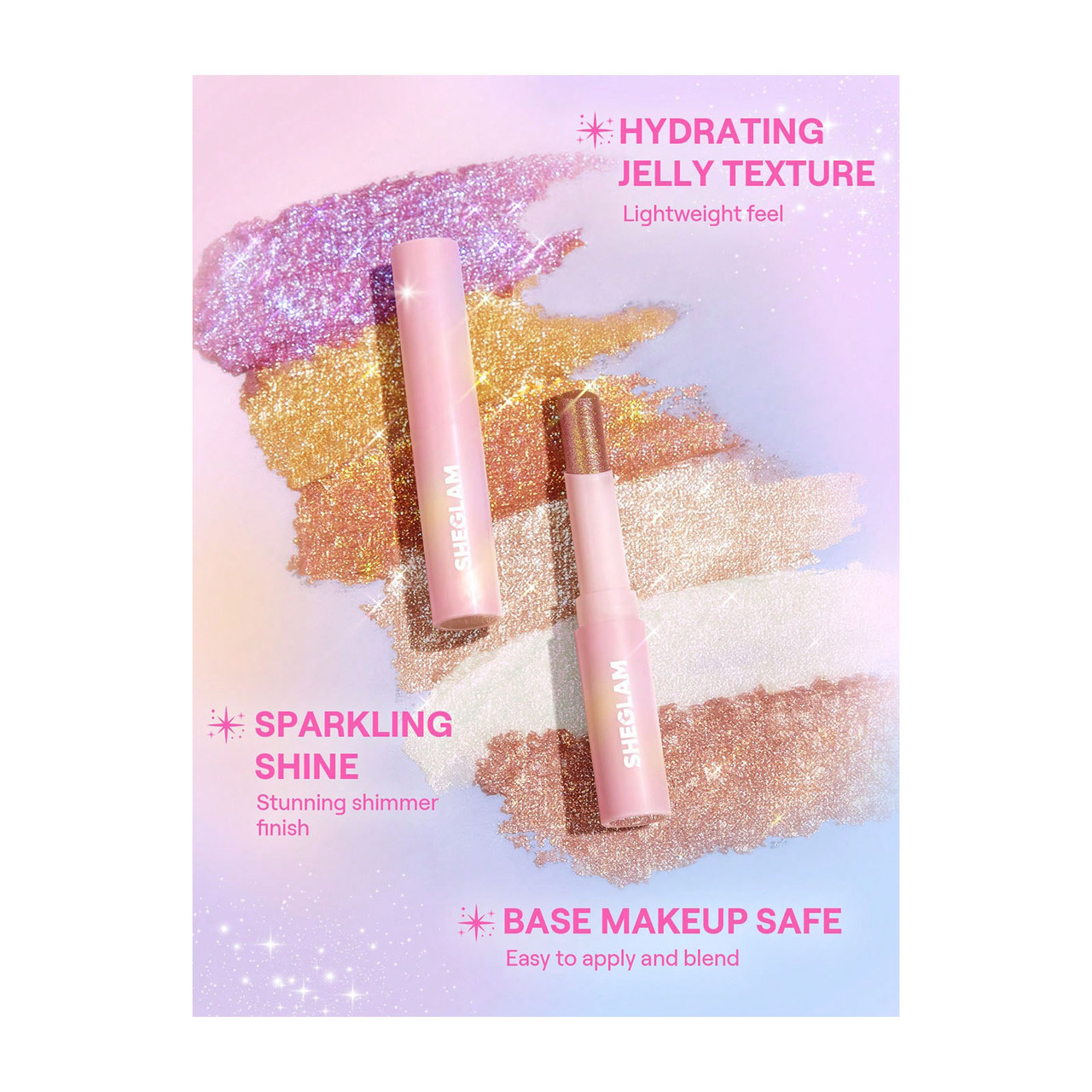 Accendi la fiamma con il nostro SHEGLAM Crystal Jelly Glaze Stick! Questa meraviglia abbagliante combina acqua e perle di smalto per offrire un finish bagnato, leggero e scintillante con una sola passata. Con la sua esclusiva formula solida ma gelatinosa, otterrai un effetto gemma sbriciolata e una rinfrescante lucentezza simile al vetro, proprio come il bagliore di una galassia.