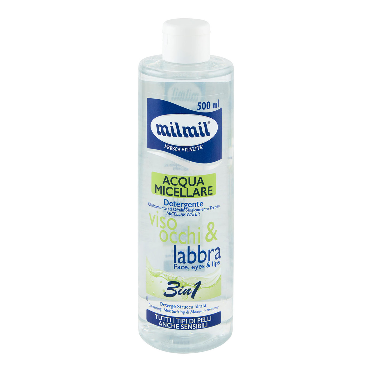 La nuova acqua micellare MIL MIL con acqua di rosa e camomilla è un favoloso prodotto con tre funzioni essenziali: DETERGE, STRUCCA e IDRATA la pelle. Adatto a tutti i tipi di pelle , è ideale per la pulizia quotidiana, lascia la pelle asciutta e non oleosa, donando una sensazione di freschezza e pulizia SENZA PROFUMO, ALCOOL, COLORANTI, SLES e SLS CLINICAMENTE ED OFTALMOLOGICAMENTE TESTATA