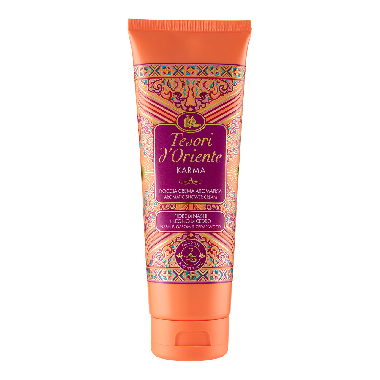 Ispirato alle antiche tradizioni Indù, il rituale Karma celebra il potere della gentilezza per trasmettere positività e buon umore. Grazie all'accordo energizzante di Limone e Bergamotto, alle gioiose note floreali del Fiore di Nashi e a quelle rassicuranti del Legno di Cedro, questa Doccia Crema Aromatica deterge dolcemente la pelle e coccola i sensi. Il suo profumo è stato arricchito con una miscela di oli aromatici in grado di infondere un piacevole senso di felicità e benessere.