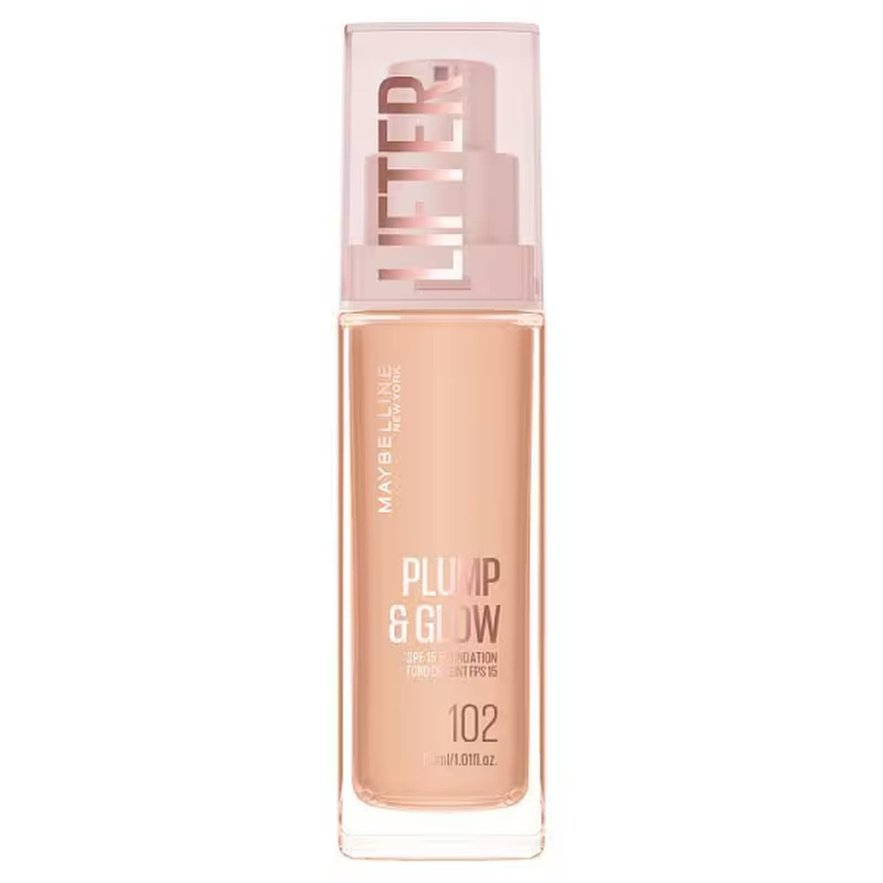 Lifter Plump & Glow Foundation di Maybelline New York: un fondotinta per la cura della pelle clinicamente testato che rimpolpa e illumina la pelle all'istante e nel tempo. La sua formula skincare al 90%, arricchita con il 2% di niacinamide e acido ialuronico, combina trucco e cura della pelle per una pelle più liscia, rimpolpata e radiosa. La sua coprenza modulabile offre un finish luminoso, dal più naturale al più intenso. La texture leggera si fonde perfettamente con la pelle per rivelare un incarnato uniforme, radioso e vibrante. Disponibile in 18 tonalità per adattarsi a tutte le carnagioni. Un fondotinta che rimpolpa e illumina la pelle, offrendo al contempo un finish luminoso, uniforme e naturale.