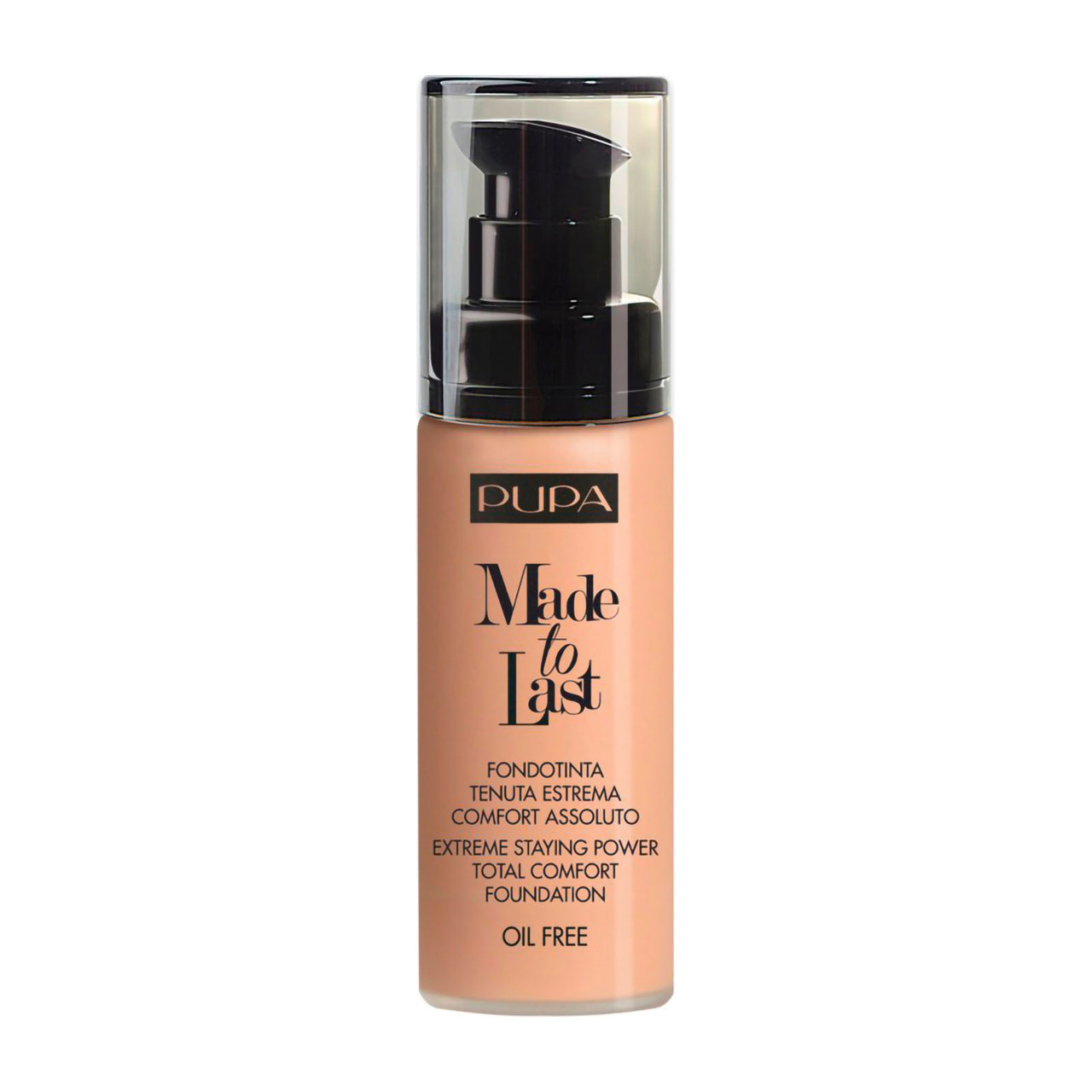 Pupa ha creato il fondotinta tenuta estrema con un comfort mai provato prima! Gli esclusivi pigmenti Last&Fix ad alta aderenza si fissano sulla pelle mantenendone il colore inalterato e fedele nel tempo con una lunghissima tenuta. La texture fresca e fondente permette una stesura facile in assoluta leggerezza senza imperfezioni.Made to Last è concepito per resistere a umidità e temperature elevate.
