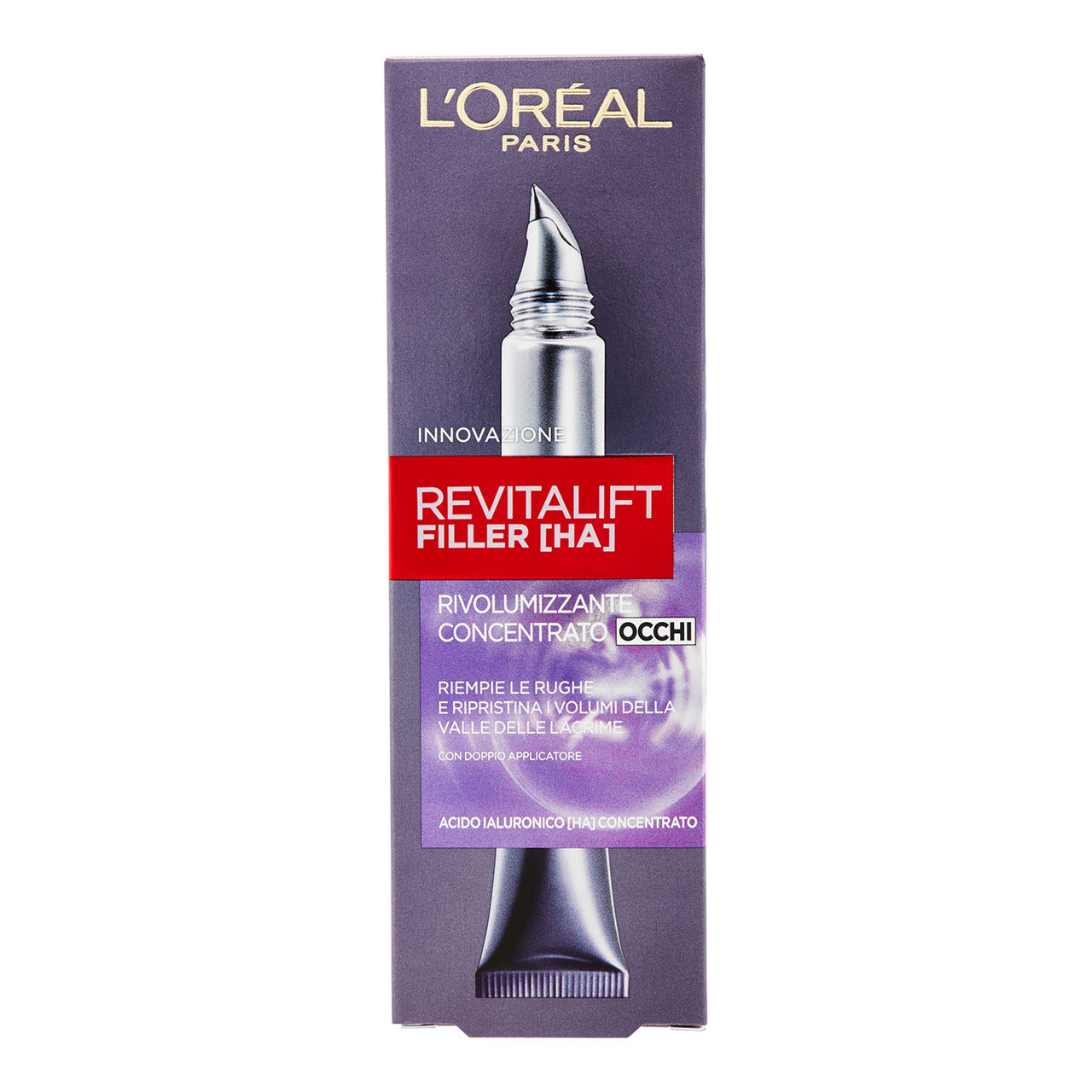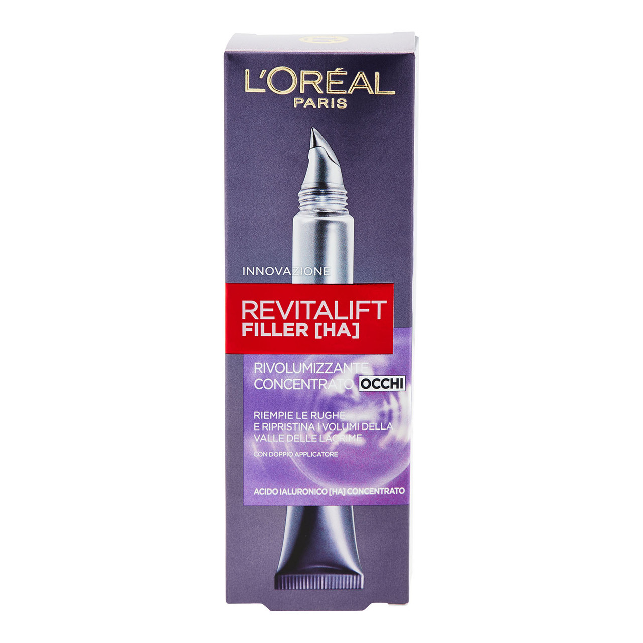 ALTA CONCENTRAZIONE IN ACIDO IALURONICO. Il trattamento Revitalift Filler [HA] Occhi contiene la più alta concentrazione di Acido Ialuronico mai formulata all'interno di un trattamento occhi L'Oréal Paris. RIEMPIE LE RUGHE E RIPRISTINA I VOLUMI DELLA "VALLE DELLE LACRIME": giorno dopo giorno lo sguardo è più fresco e riposato.