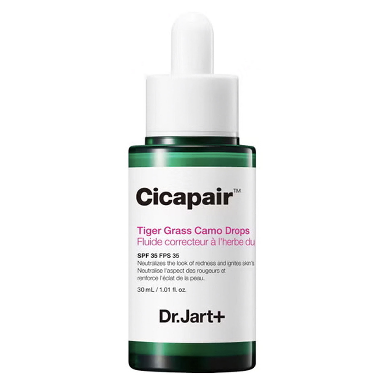 Il Cicapair™ Tiger Grass Camo Drops SPF 35 di Dr. Jart+ si adatta al tono della pelle e può neutralizzare e levigare le aree irritate del viso. In questo modo, la pelle appare più uniforme e la base viso ricomincia immediatamente a risplendere. La formulazione con niacinamide ha anche carattere protettivo, mentre la Centella asiatica lenisce la pelle e le permette di calmarsi. Grazie all'ossido di zinco e al biossido di titanio contenuti, il siero con fattore di protezione solare 35 protegge anche dai raggi UVA e UVB.